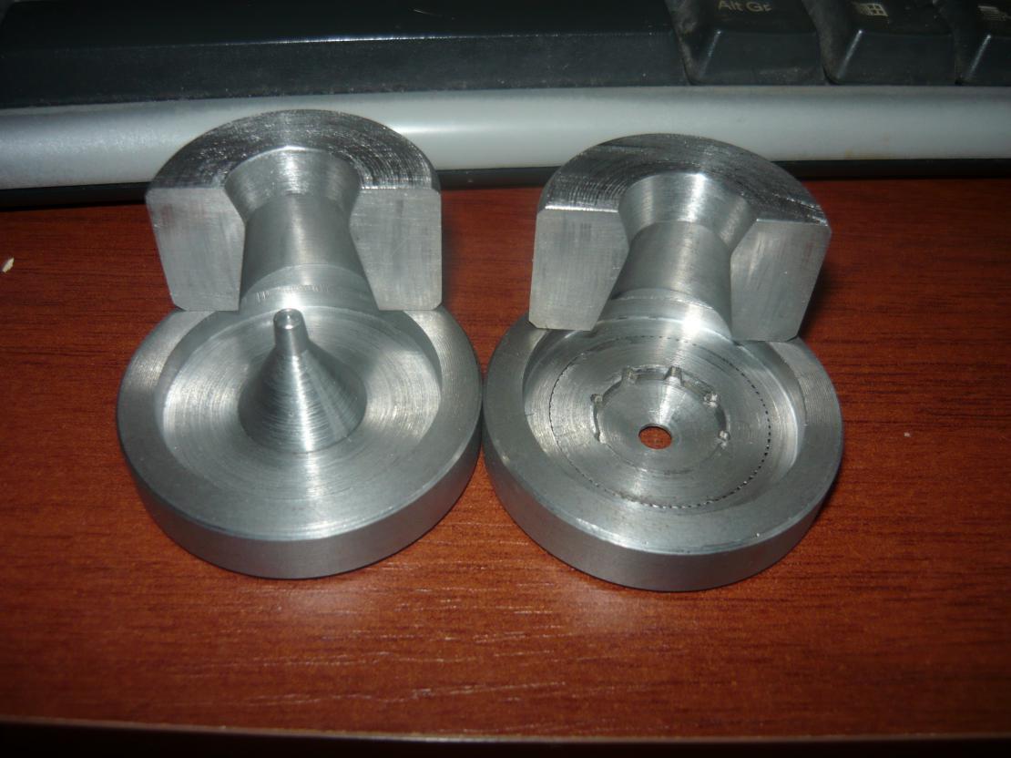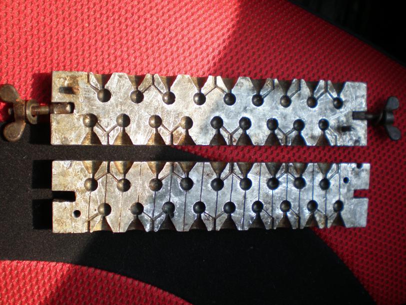 заливные отверстия рассверлены для удобства заливки. Лейка разогревается сначала,а потом уже заливается в нее свинец.Отличная пуля получается главное чтоб руки не тряслись)))