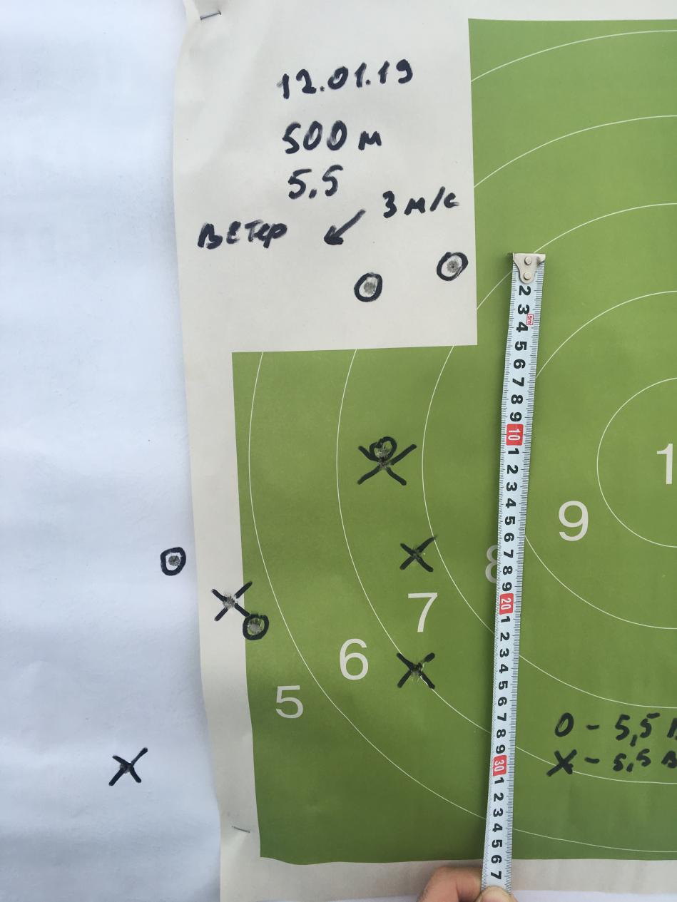 Кучность по паспорту 51 мм, по факту на 100 - в районе 35 мм, на 500 - 20-25 см валовым патроном НПЗ.