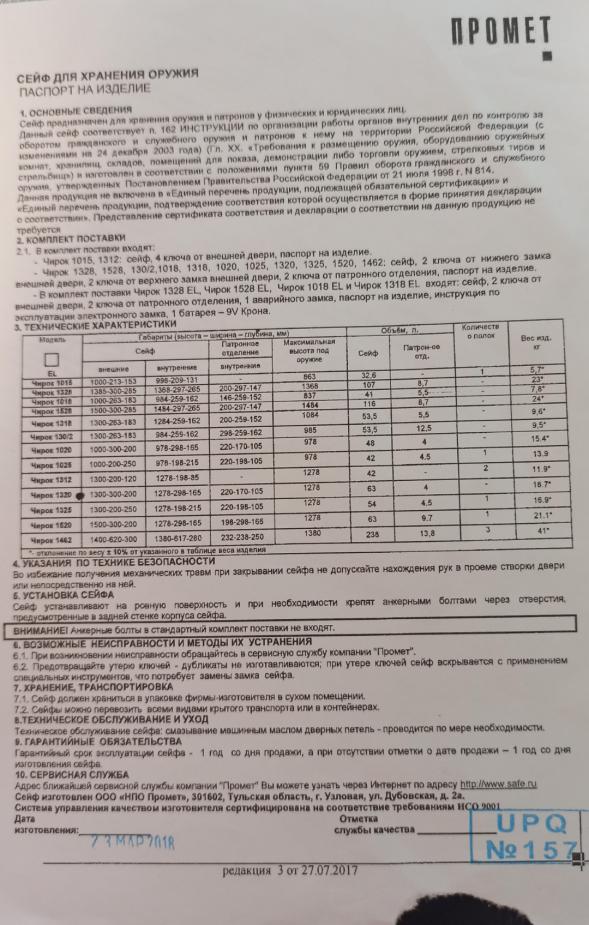 Сейф Чирок 1320