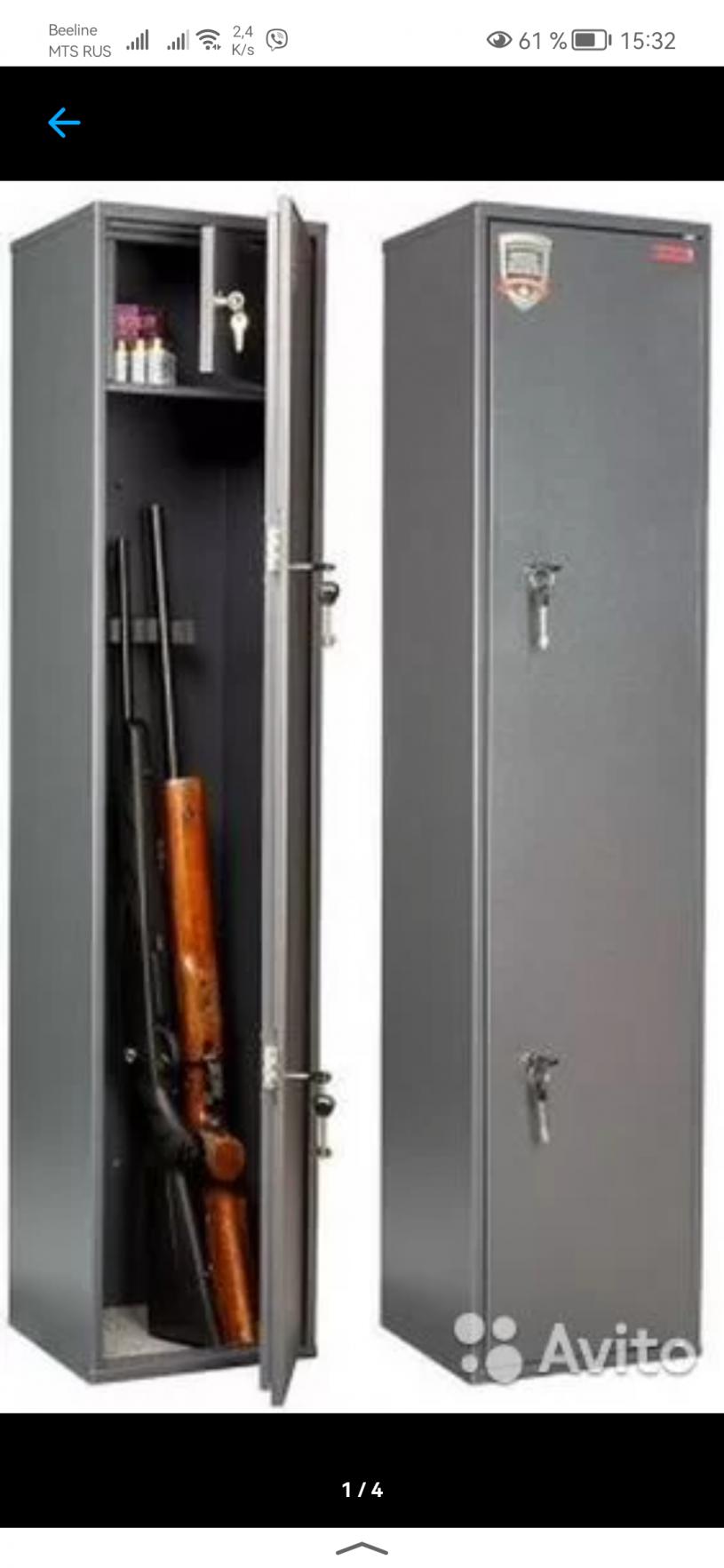 Внешние размеры: 1385х300х285, ящик под патроны с дверкой и замком 160х300х150, за стенкой место под продление ствола. Под 3 ствола, 2 замка, цвет графит, есть дополнительная съемная полка.Состояние нового. Цена 6 т. р.