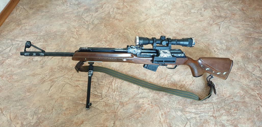 65000₽ Сувенирное исполнение, резьба по дереву, гравировка по металлу. Ствол 550 мм.Настрел до 100 выстрелов. В комплекте прицел ВОМЗ 4*32, чехол. Торг не воспрещен. |