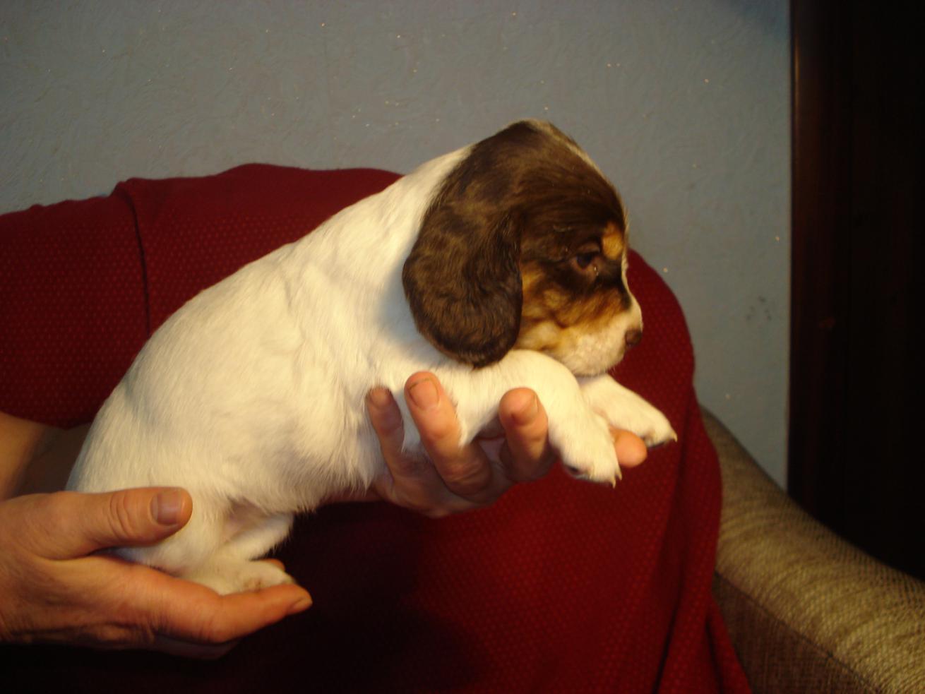 Щенок коричнево-пегий в крапе (пятый).
