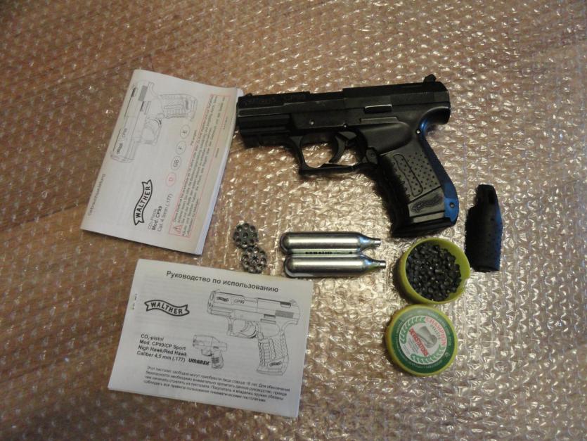 4. Umarex walther CP99. Нарезной ствол. Слегка потерта краска на гранях. Стреляет только свинцовыми пулями, очень метко. Работает идеально. Комплект на фото. Цена 3500.
