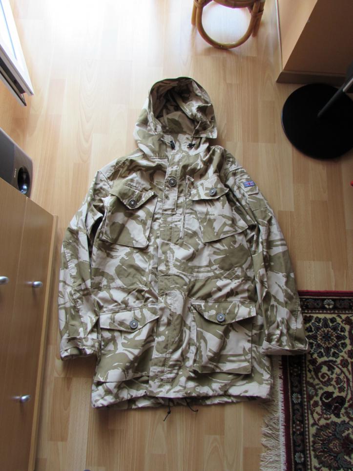Парка ветрозащитная SMOCK армии Великобритании. Оригинал. Расцветка - тропик. Desert DPM. На парке 4 накладных кармана, два внутренних на молнии, утягивается на талии и внизу. В капюшон вставлен проволочный кант для придания удобной формы, капюшон также утягивается. Манжеты куртки регулируются липучкой. Ткань - двухслойная, непродуваемая, плотная. НОВАЯ.