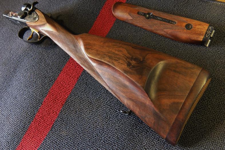 Добавлю очередную работу Сергея на штучник! Очень понравилась работа. Орех редкий, тигровый глаз. Английская ложа получилась "мускулистая", очень удобная для стрельбы. Баланс отличный. Если честно, я даже не ожидал что мне так подойдёт! Вложился как влитой. Планка где надо, да и приоткрыта как надо! Хоть завтра на стенд! Делюсь фотографиями...