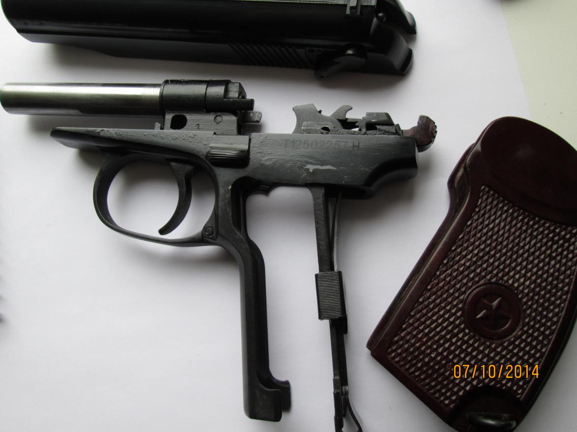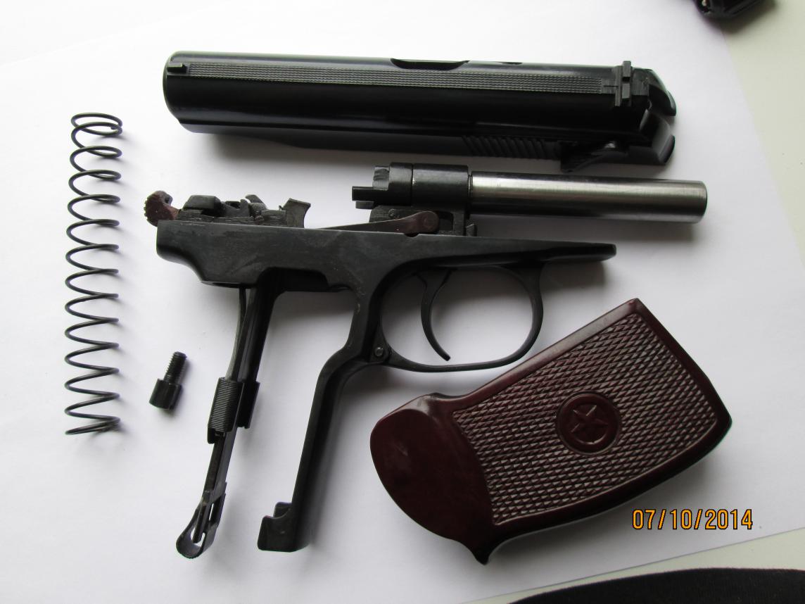 Произведена шлифовка, заводской шершавой поверхности больше нет. Заново оксидирован, вклеен имитатор выбрасывателя, установлен штифт под стволом. Расточен клапан и обтюратор, установлен длинный боёк, установлена гнутая скоба боевой пружины ПМ, магазин под скобу переделан. Спусковой крючок переточен, гайка ствола круглая. В комплекте паспорт с отвёрткой, стандартный ново дельный винт боевой пружины, стандартный короткий боёк. Дополнительно отдам гладкий ствол, замена производится проще чем в стандартном варианте, так как пружину спусковой скобы держит штифт что установлен под стволом. ППШ-М цена 13.000 С аппаратом ни чего ни делал, ни разу ни стрелял. Брал в качестве стреляющего макета. В комплекте паспорт, маслёнка, второй приклад. 6П42-7,62 газовый цена 4.500 есть шум и газ пат, по договорённости. Оформляется на лицензию. Тел. 892789900 семь шесть |