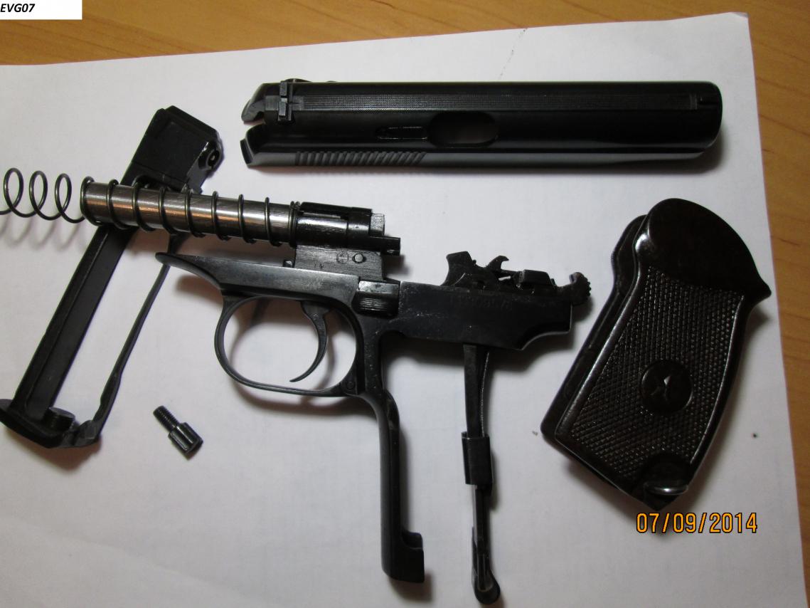 Произведена шлифовка, заводской шершавой поверхности больше нет. Заново оксидирован, вклеен имитатор выбрасывателя, установлен штифт под стволом. Расточен клапан и обтюратор, установлен длинный боёк, установлена гнутая скоба боевой пружины ПМ, магазин под скобу переделан. Спусковой крючок переточен, гайка ствола круглая. В комплекте паспорт с отвёрткой, стандартный ново дельный винт боевой пружины, стандартный короткий боёк. Дополнительно отдам гладкий ствол, замена производится проще чем в стандартном варианте, так как пружину спусковой скобы держит штифт что установлен под стволом. ППШ-М цена 13.000 С аппаратом ни чего ни делал, ни разу ни стрелял. Брал в качестве стреляющего макета. В комплекте паспорт, маслёнка, второй приклад. 6П42-7,62 газовый цена 4.500 есть шум и газ пат, по договорённости. Оформляется на лицензию. Тел. 892789900 семь шесть |