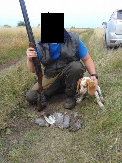 в общем ездили вчера в поля, выехали часов в 9, псу еще нет 4 мес. так что он еще не понимает что от него хотят да и впервые на охоте, добыли 2 куропатки и 2 перепела. фото постараюсь выложить сегодня вечером если провод найду.