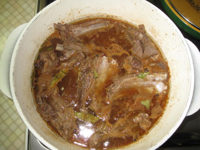 Жена опять задерживается на работе,птенчики рты открывают,кушать просят.С утра достал из морозилки ребрышки косулячьи.Рецепт очень простой,вполне справится любой даже очень далекий от кухни человек(самое сложное - отнять у косули ребра).В гусятницу наливаю немного масла без запаха.Козлик осенний и у него своего жирка натопится. На большом огне обжариваю,постоянно помешивая ребрышки мин 10-15.Определяю на глаз,когда перестает кровь выступать.Затем заливаю на 1.5-2 кг ребер 100гр соевого соуса,300гр домашнего кетчупа,с десяток душистого перца горошком,с пяток лаврового листа,немного соли(не забываем,что соевый соус очень соленый) и заливаю кипятком так,чтобы покрыло все кусочки.Перемешал и на медленный огонь под крышку тушиться.В процессе несколько раз открываю и перемешиваю.Готовность определяется,когда мясо начинает отставать от костей.В среднем по опыту 1.5 часа.А пока этот процесс идет отварил макароны,на сковородке с маленьким содержанием масла обжарил грибы(в моем случае это были лисички) смешал и мин 5 на медленном огне подержал под крышкой.Порезал свежую зелень.Есть пару фотографий,фото с красиво все разложенным сделать не успел,отвлек звонок и дети уже картину маслом слегка "попробовали".Всем приятного аппетита!