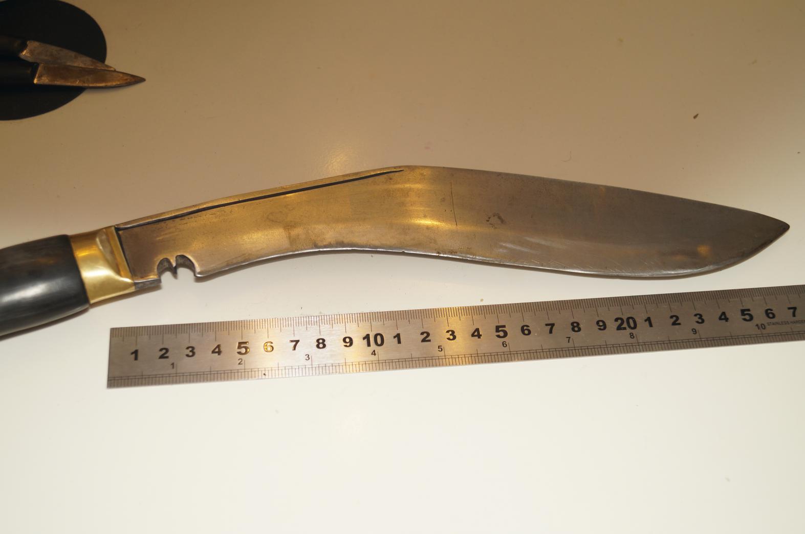 3000р. Нож-мачете кукри Nepal Army 2011г. Состояние нормальное. Рукоять рог, ножны дерево, кожа.