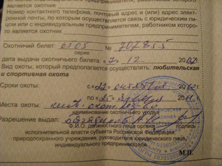 Вернулся с Краснодарского края, а точнее с Адыгеи, так как жил на границе! Погода скажем так весна +8, поэтому на зайца просто чернотроп, без собакена там делать нечего, хотя на зайца наступил.....но не попал , потому как бежал в сторону садящихся на пруд гусей (в дальнейшем бакланы) - Новый год короче!![]() В один из дней выпал снег (о чудо) естественно я уже с ружьем в поле, а дальше не поверите, такое ощущение, что все зайцы вышли посмотреть на снег, стоко следов я не видел, троприть без толку, а к вечеру снег растаял! А вот и сама путевка - в принципе халява, хотя её там редко кто берет! |