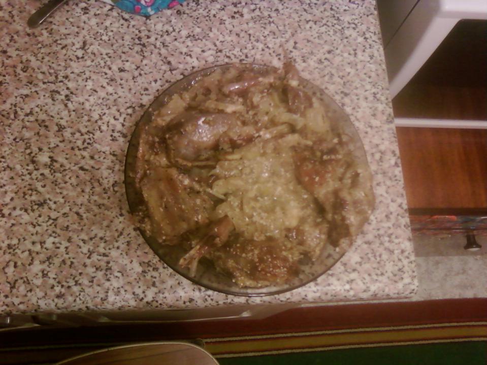 Взял толстостенную сковородку,положил в середину куропатку и обложил сегодняшними жирными дроздами нарезал туда полукольцами лук,дольки чеснока порезанные крупно вложил внутрь птичек,смазал всё это майонезом с приправой для жарки мяса и в духовку минут на 35-40.Результат на фото.Ну а содержимое тарелки уже там где и положено