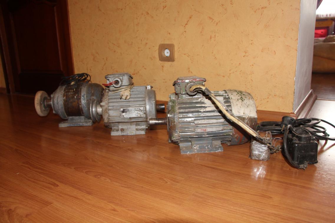 7. 3 асинхронных электродвигателя с разными характеристиками, насадками и приспособлениями. Все на данный момент подключены на 220В. Запускаются через конденсаторы (автоматически) и легким вращением руки. Стоимость от 1000 до 1500р. в зависимости от комплектации, мощности, оборотов.