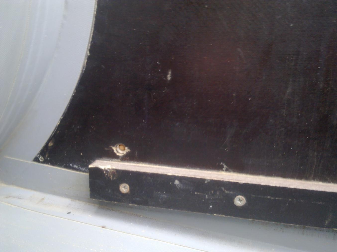 Чуть не забыл.Отверстия в транце от крепления колёс заделаны деревянными нагелями на клею.
