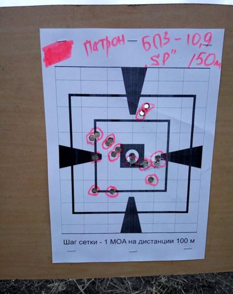 Неужто ни кто не постреливает с данного вида "калашоида"? Вот ездил, малеха дырявил бумагу. Готовился к сезону. Пострелял от души. Есть непонятка: с холодного ствола 3-4 выстрела идут нормуль, а вот пятый (магазин пятёрка) - в отрыв. И так почти всегда. Условия были не очень: ветерок с севера 3-5 м/с. Высокая влажность: после и перед дождичком. Температура +7. Стрельба: станочек и х***ёвый столик - весь шатается... Оружие: в теме. Прицел 1-4х20 "Никон". Мишень стандартная, шаг сетки соответствует указанному на ней. На сотку пристреливал, потом шмальнул на 150 м. Три магазина подряд. Для охоты "прокатит". Кто ещё ездит "веселиться" с подобными аппаратами - делитесь...