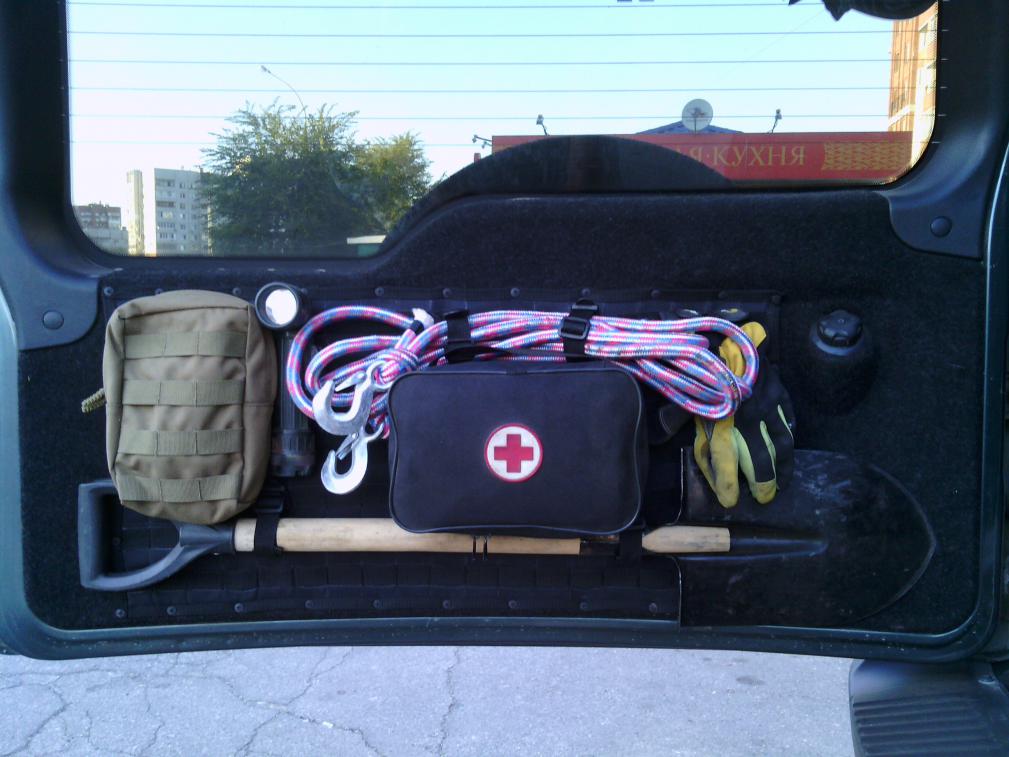 С помощью данной платформу удобно разместить различного рода мелочевку и шансовый инструмент, чтоб не ездит по багажнику авто. На фото дверь моего авто