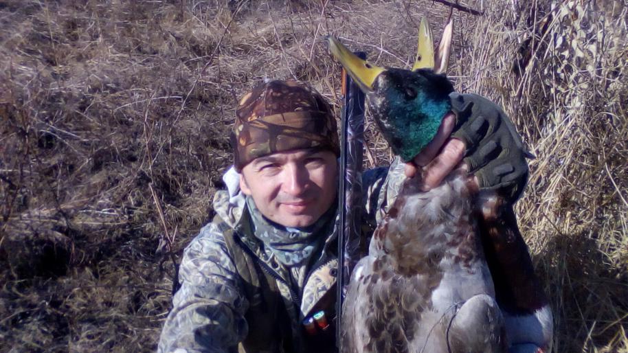 . Довольный, уставший, в 7 часов уже был дома и щипал селезня, который оказался ну ооочень жирным. На вечерку решил не ходить, но на утрянку снова прибыл на старое место. Ночь была теплее, льда уже не было, в 3.30 я уже сидел замаскированный в кустарнике, пытаясь своим манком изобразить страстную и очень доступную утку.... Уже отпел мулла в Выселках, но селезни ко мне не очень летели. Вокруг стоял шум из свиста свиязи и звука крыльев носящихся на сверхзвуке чирков... И вот один свистунок решит таки подсесть к моим чучелам и проверить, может там и ему что перепадет... Перепала только дробь, и все. Жесткий был для него облом. От звука выстрела поднялось много сидящих уток, а метрах в двухстах даже оказывается сидели отдыхали гуси. Такой гогот... Немного все успокоились и ко мне на чучела зашла пара кряковых... Боюсь дышать. лишь бы не спугнуть.. и вот они сели и начали резвиться. Определив селезня и дождавшись, когда он немного отплыл от самки, незамедлительно нажал на спусковой крючок. Когда совсем рассвело утка уже стала облетать меня стороной, в редком кустарнике я был довольно-таки заметен. Вот так и открылся.