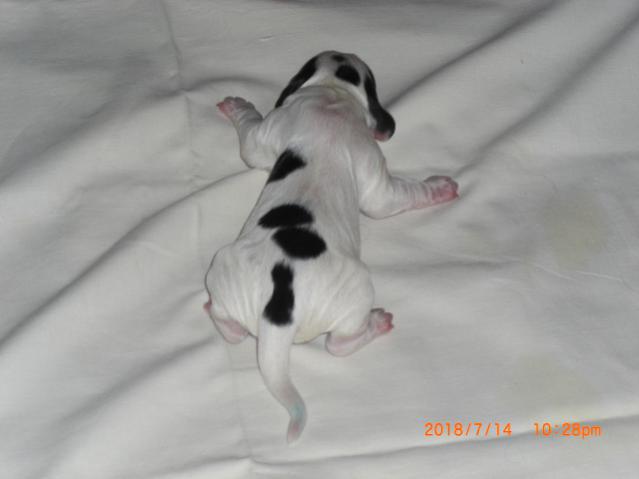 8 щенков: 5 кобелей (4 черно пегих, 1 рыже пегий) / 3 суки (2 черно-пегие, 1 рыже пегая).