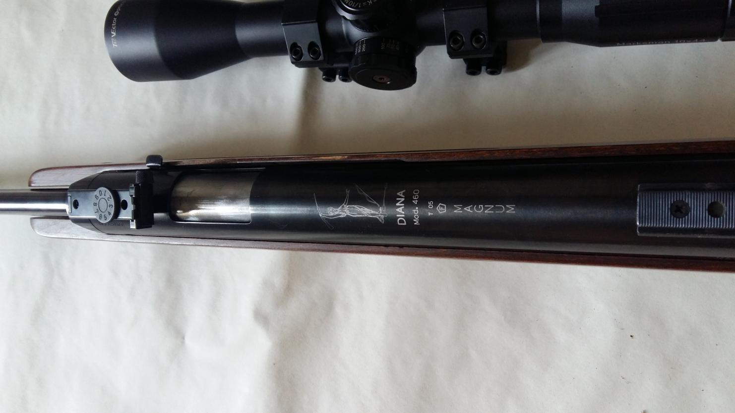 Продаю Диану 460.Установлена стальная муфта рычага взвода,металлическая направляющая,фторопластовый стакан антизвон Скорость 0.67 д65 с.сек.пристрелена на 50 метров.Оптика Marksman 10×44.За весь комплект 33.т.руб.тел.8 937 650 76 95