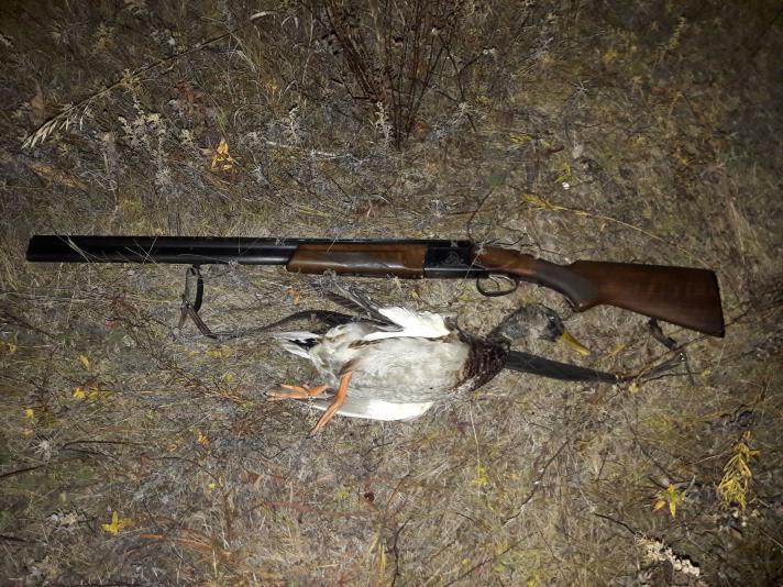 Постараюсь быть краток. Приехали, раскидали чучела, крякаем. Налет одиночки. Бац-бац и мимо! Еще несколько одиночек и пар пролетели вдалеке. 3 стаи голов 30-40 пролетели над головой на кислороде. С каким-то знакомым звуком налетает пара, один садится к чучелам. Стреляет напарник, попадание есть, но птица начинает набирать высоту, дуплечу я, птица падает. Сразу забирать не стали. Почти полная темнота. Прозевали еще 3 налета. Идем собирать чучела, подбираю сбитую птицу и впадаю в ступор. Это Гуменник! По размеру то мы догадывались, что это не утка, думали баклан, а тут такой нежданчик! Фотосессия на берегу с первым в моей жизни гусем, обработал добычу и домой.