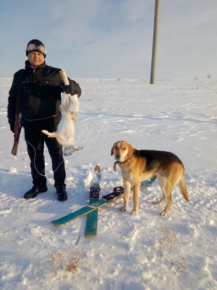 .Сделал оплошность - пошел без лыж (якобы недалеко-как местные сказали), в итоге 12 км по снегу до колена и выше!!! Пипец подготовка!! Первого взял через 4 минуты 22 секунды после старта: Второго к вечеру: Брал 2-ухстволку, к вечеру расстрелял патронтаж , стрелял на пределе, нужен был подранок - собаке для науки, а зайцы поднимались далеко, т.к. наст гремит на всю округу!! В итоге одного гоняли с Громом полдня, сам с ним бегал, как гончак. А заяц - сука!! Все время держал нас в поле зрения! Гром аж выть начинал от безсилья - тонет в снегу, сил не хватает догнать , то лает, то скулит, а догнать - никак. В итоге и кровить перестал, вернулся в посадку, которую мы с товарищем толкнули на стрелка. Надеюсь моего подранка и стрельнул он. Не уверен, т.к. выгнали трех зайцев, стрельнул он только одного (отмерзли пальцы, не смог качественно отстреляться), лапа отстрелена, как и у моего подранка, но.......На следующий день завернуло -33!! Свежего снега не было. Если в первый день еще удавалось тропить, то теперь уж только интуитивно, ибо ушастые набегали еще больше. Поменяли тактику с гуляния и поиска следов на мини загончики (т.к в первый день отмахали 23 км, да и хруст усилился). Результат тоже был положительный: Зайца очень много, что не может не радовать! Сколько взглядом проводил -не сосчитать! Надеюсь к субботе сделаю кино. Если получится-сюда выложу. ![]() P/S: Совсем забыл про счетоводов!! Соррян!! Нас было трое, норма-2 зайца в день, за два дня взяли 6 штук, всех раздал опять .