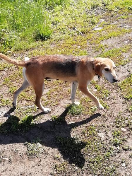 У нас в посёлке (Стройкерамика) прибилась гончая. Сука, в ошейник. Как выяснилось, находится здесь давно (ещё был снег), сейчас с двумя щенками. Наличие клейма не могу посмотреть, подпускает- на расстоянии вытянутой руки. Есть ошейник.