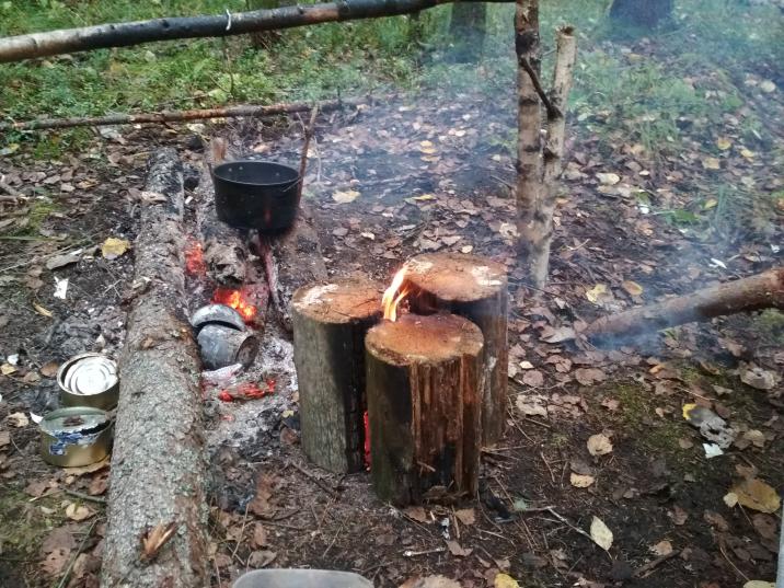 Костер финская свеча не больно-то изделие, но сделан своими же руками)). Иногда очень удобен. Сидишь в кресле, режешь на доске мясцо, на свече лучок с морковкой жарятся в непосредственном доступе. Ну или грибы.