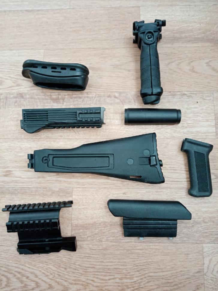 Продам 1) Комплект нового пластика (снято с Сайги МК 033, цевьё без экрана)-2000 рублей. 2)"Калоша" 500 рублей. 3)Кронштейн Leapers UTG с двумя планками вивера-1000 рублей. 4)Новая передняя рукоятка-сошки( реплика Fab-Defense)-1200 рублей.5) Новая щека рамочного приклада от Custom Arms первых выпусков-1200 рублей. Оплата на карту сбера 4276хххххх6126. Пересыл почтой РФ за счёт покупателя куда угодно.