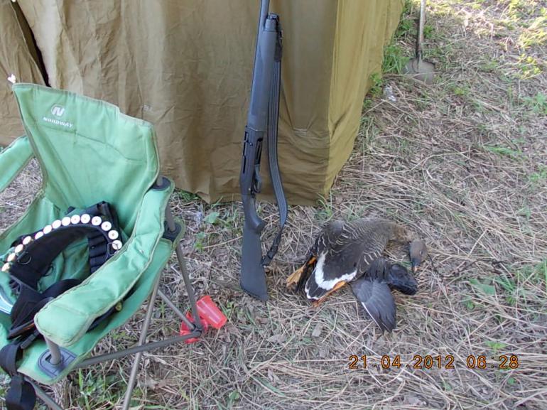 После утренней решили немного отдохнуть,и так называемый отдых продлился до самого вечера.Вечером уже никто передвигаться самостоятельно не мог)))).Следующий день начался тоже рано,но особого успеха не принес.Гусь шел высоко.Был бит еще один на высоте.Тоже чисто случайно.Попала всего одна дробина в голову.П.с:автор сего поста сбил пару чирков(сфотать не успел,т.к быстренько были отправлены в котелок).Ну в общем и все...Птицы набили не ахти сколько,но зато отдохнули!!!