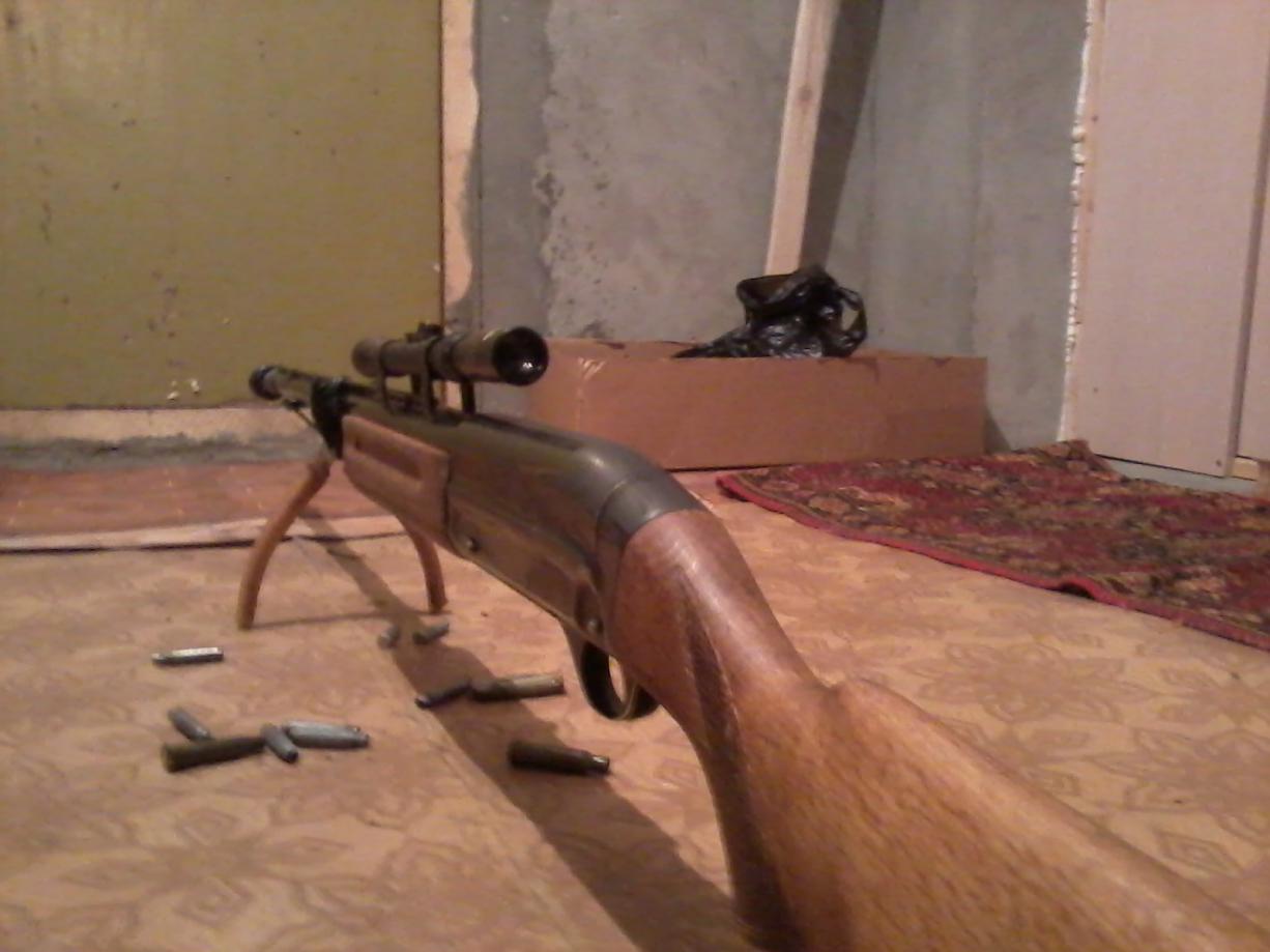 Ружьё взял уже с прикладом, который шёл с ложей Дальше пошла череда испражнений, тьфу ты, изменений. Первым делом ложе было заменено на другое. В основе рельса от детской железной дороги ,и косточка от лифчика. Основной материал бук, сверху покрыт воском, приклат залит, побрит, подмыт и взят в кредит, затыльник из китайского шлёпанца, АРОМАТИЗАЦИОННЫЙ. Далее были донюханы остатки клея ,на коробку установлена оптика tasco 3-7х20 и сошки. Ну вот и венец творения - нашёл пришёл тдк, сделанный на камаз. Ну и щека с пепельницей, а также ремень с накомарником и подогревом антабок(его нет на фото) Сегодня наконец-то выбрался пристрелять и отстрелять на кучу. Патронов у меня в распоряжении было всего 10(больше в магазине не продали когда мой карабин увидели), скм с дробью номер 3 и 7, 7 из которых ушли на пристрелку. Отстрел произвёл на 50 метров, в дальнейшем планирую на 47 и 52 метра. Стрельнув первый раз, отвалился шомпол( на фото под стволом). На ворой выстрел приехала милиция, дали дубинкой по спине, отобрали кошелек и смеясь уехали. Встал ,снял штаны, заглянул - для первого раза и хрен знает какими патрона куча меня удовлетворила. Осмотрев ещё раз свой карабин, понял что не хватает дискового магазина и штык-ножа "негритёнок" Но продолжение, как и весенние обострение, следует.... |