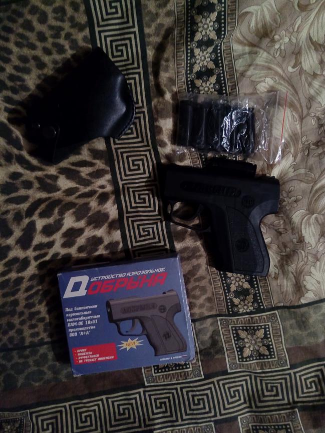 Устройство аэрозольное модели «ДОБРЫНЯ» является средством самозащиты и предназначено для метания жидких рецептур в лицо нападающему из баллончиков аэрозольных малогабаритных БАМ-ОС.000 18х51 производства ООО «А+А.