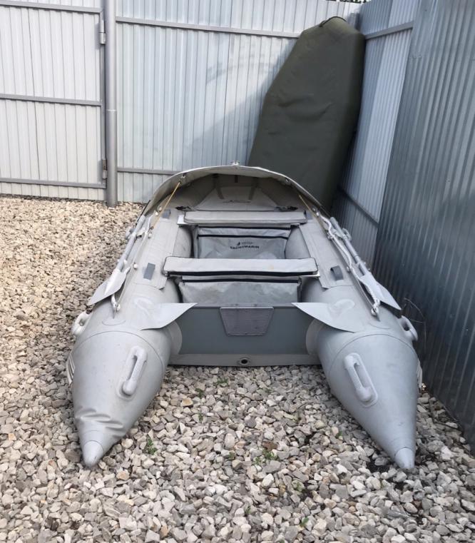 Длина 3.3. Светло-серого цвета. Пайолы алюминиевые. Стояночный тент, носовой тент - полный комплект. Цена 30000р. 89879128779