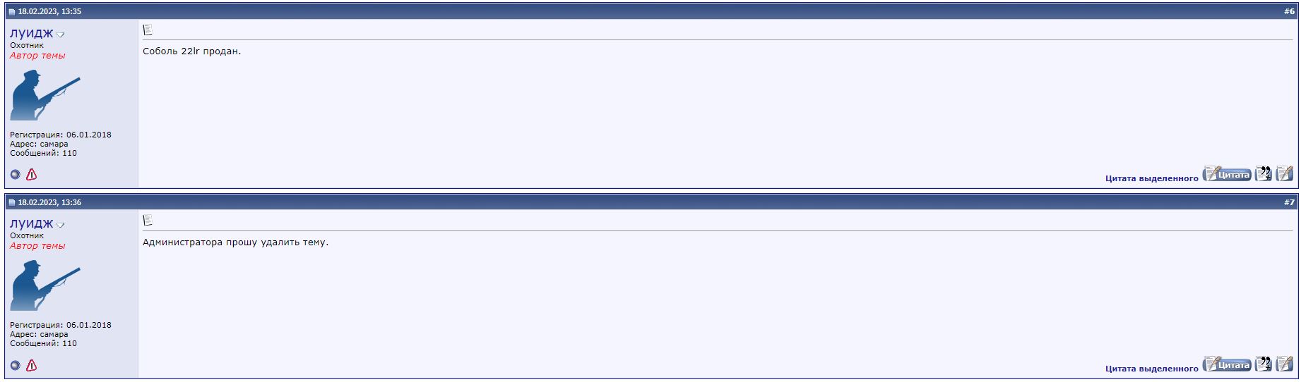 Чет не понятно ничего. В соседней теме от "Луидж" этот карабин вроде как продан? Запись от 18 февраля. И тут же 18 февраля выкладывается по новой, под новым "ником", хотя телефон для информации указан тот-же...