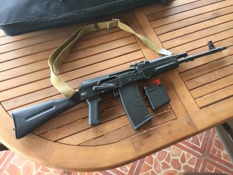 Товарищ попросил выставить на продажу свою Сайгу 410к со складным прикладом. Год выпуска наверное 2000. Настрел со слов хозяина патронов 50 по бутылкам. Лежит без дела с момента покупки. В комплекте 2 магазина, чехол, ремень, шомпол для чистки и 10 бонусов для пробного отстрела.