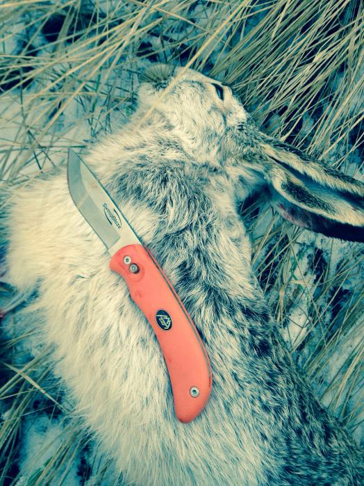 В субботу открылся по зайке, снега мало было еще, распутывать след местами сложно очень, но один добыт! Кстати опробовал ножик новый! Работает прекрасно! Спасибо Жень!