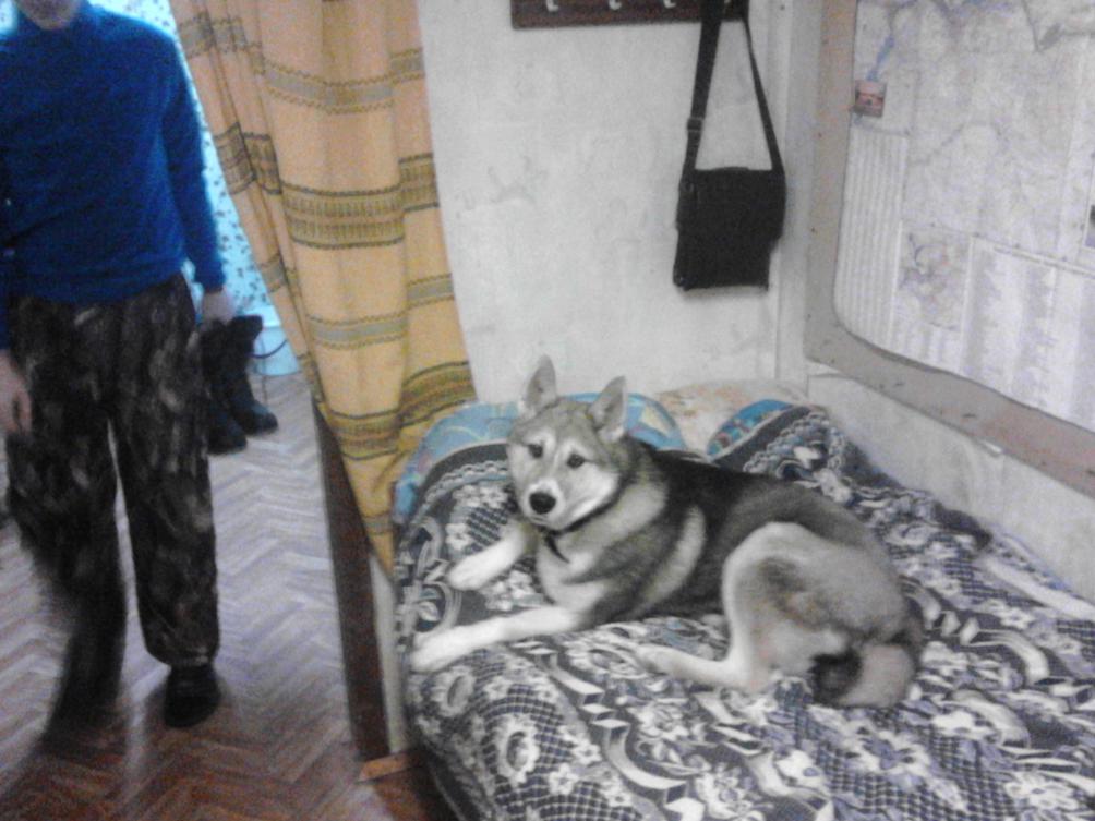 Амурчик отдыхает в охотничьем вагончике перед тяжелым охотничьим днём, наглость его терпелась только два кадра, потом полёт на пол на фуфайку.