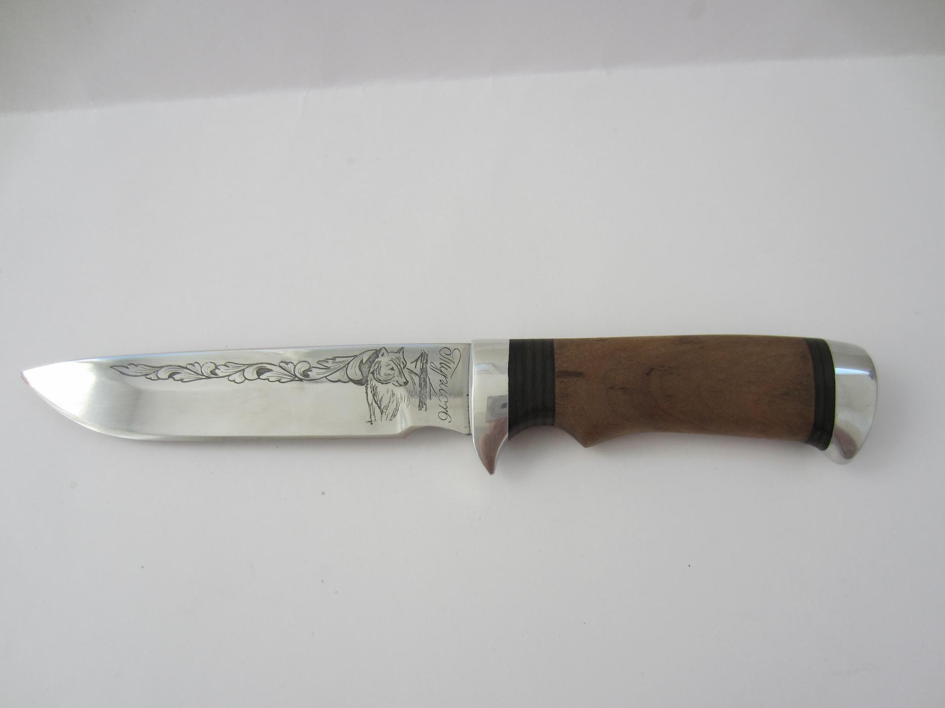 Лот 2: Нож "Турист", сталь 95х18. Подарок, была переделана рукоять: кожа, бук, дюраль. Монтаж сквозной, пропитка - льнянка. Длинна общая - 250 мм; длинна лезвия - 140 мм; толщина - 3 мм; ширина лезвия - 28 мм. Цена лота: 1500 руб.