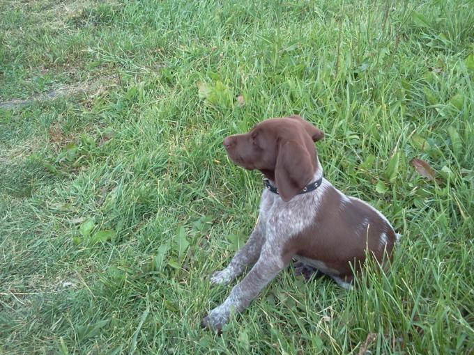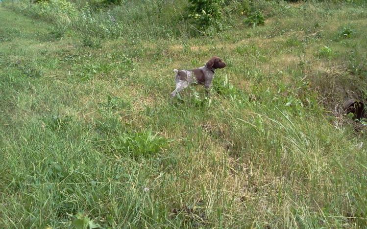 Щенок растёт.Думаю что в августе его уже можно будет натаскивать.Отец щенка рано начал в поле работать,мать тоже.Хозяина хорошего бы ему!!!
