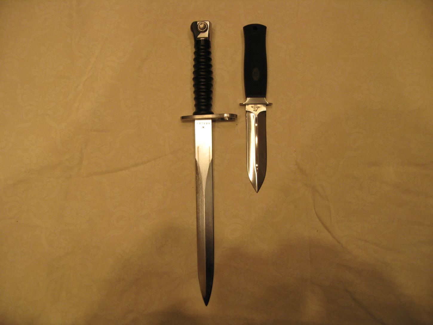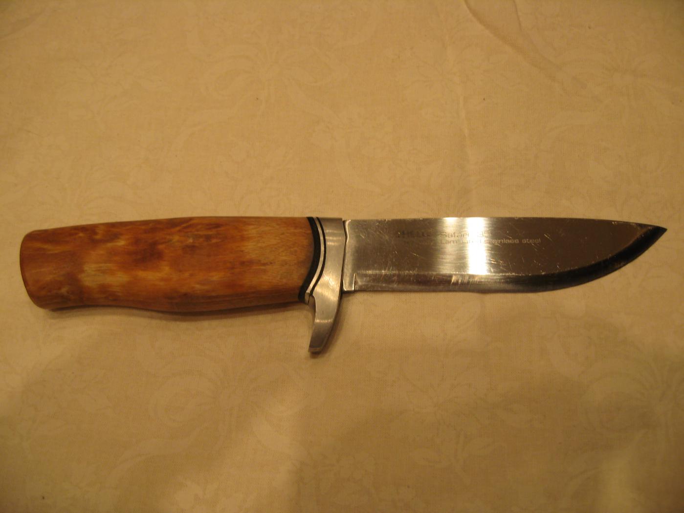 Мои ножи.Кизлярский Скорпион куплен непосредственно на заводе,номерной,в билет записан.На практике крупноват.Для колбаски обычный складной.На охоту всегда беру брусочек марки АЗК36М40.2-3 движения и подправил.