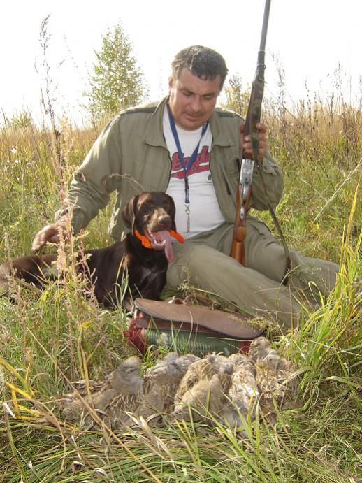 в общем ездили вчера в поля, выехали часов в 9, псу еще нет 4 мес. так что он еще не понимает что от него хотят да и впервые на охоте, добыли 2 куропатки и 2 перепела. фото постараюсь выложить сегодня вечером если провод найду.