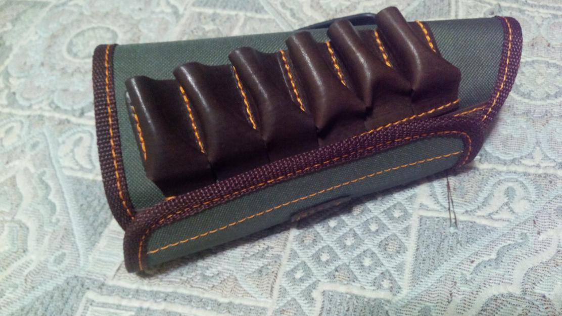 3) красивый патронташ на приклад, новый не ставился, зеленый с коричневым и оранжевыми нитками. вживую красивее чем на фото, приятный на ощупь, тактильно должен плохо пачкаться и легко мыться, быстро одевается, окно под антабку, липучка. 6мест. 800р