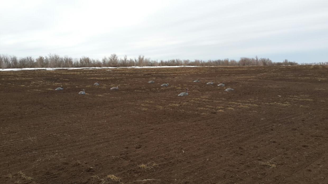 да около снежницы стреляли ноль и два ноля поле озимых но плохо взошедших выставляли 46 скорлупок краснодарских и 12 живое перо на краю поля около снежницы бурьян вот там в леших замечательно маскироватся летал утром и вечером но с утра минус 6 и лужа замерзало гусь снижался плохо а вечером когда оттает нормально ниже спускался, да ветер там сильный был гусь заходил в полветра, манили манками folks