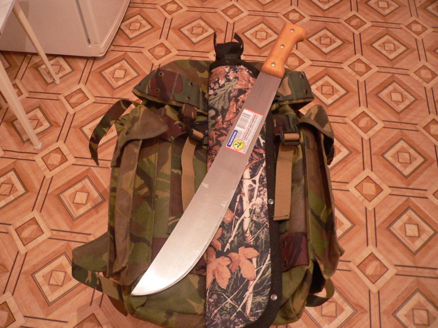 Среди охотников бытует мнение, что с собой нужно носить два ножа: один шкуросъёмный, второй для лагерных работ. И это правильно. Поэтому я в арсенале держу: шкуросъёмник Buck и мачете Tramontina 45 см. вместо топорика (кости, тушки, ветки, дрова, даже вместо лопатки можно). Tramontina вообще на ура работает по всему его трудно испоганить.