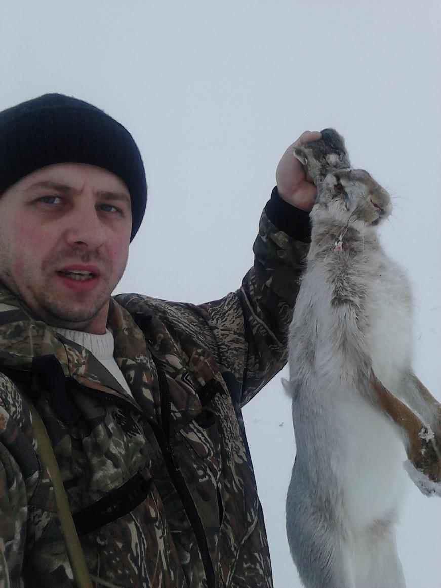 Заяц лежал на пашне и не в какую не хотел подниматься с лежки,пришлось снежком его от туда выбивать,отпустить на 30-40 метров и бить его.Был еще хороший след,но у меня не было времени,надо по делам.