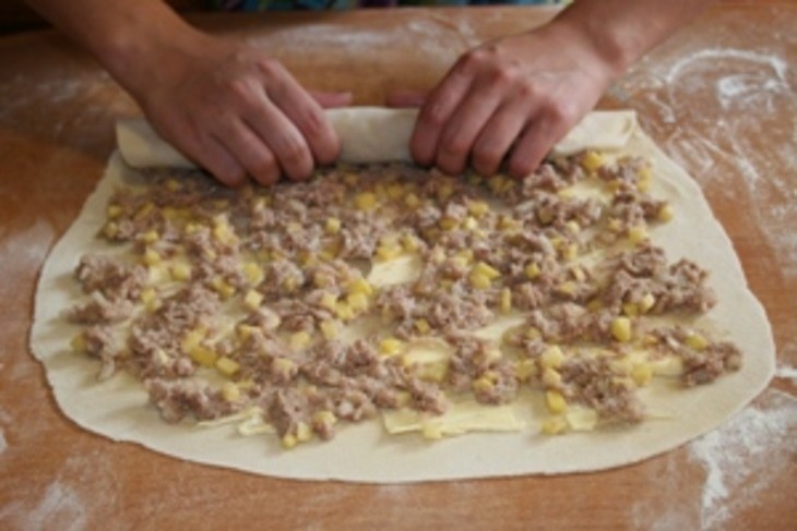 Ингредиенты: Для теста: · 1 яйцо · 50 - 100 мл воды · 1-2 столовые ложки масла растительного · муки сколько возьмет тесто Для начинки: · фарш · 2 моркови · 2 головки лука · соль · перец Приготовление: Замесить крутое тесто, которому дать отдохнуть, пока готовим начинку. На крупную терку натираем 2 моркови и 2 головки мелко порезанного лука, слегка обжариваем. В мясной фарш добавляем специи, соль, можно потереть картофелину. Тонко раскатываем тесто, выкладываем мясной фарш, на него -овощной. Сворачиваем все в плотный рулет, укладываем на смазанную маслом пароварку (можно выложить на фольгу и запечь в духовке). В воду добавляем лавровый лиcт, душистый перец и немного соли. Варить 40 минут. Выложить в блюдо, полить маслом. Подать томатный или сметанный соус. |