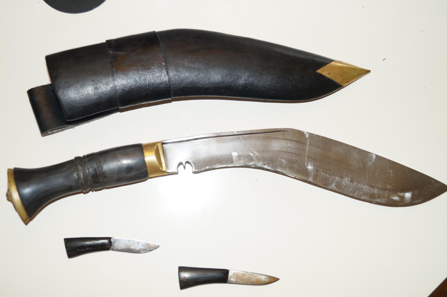 3000р. Нож-мачете кукри Nepal Army 2011г. Состояние нормальное. Рукоять рог, ножны дерево, кожа.
