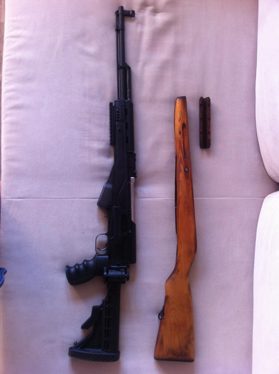 Продаю карабин ОП СКС кал. 7,62х39 мм, завода Молот, 1951 г.в. В пластиковом ложе ATI (черное) со складывающимся прикладом, родное деревянное идет в придачу. Приобретен в 2011 г., настрел 230. Ствол не хромированный. Кримметка, по паспорту есть, но сам не нашел ее . Причина продажи - освобождение места для нового.