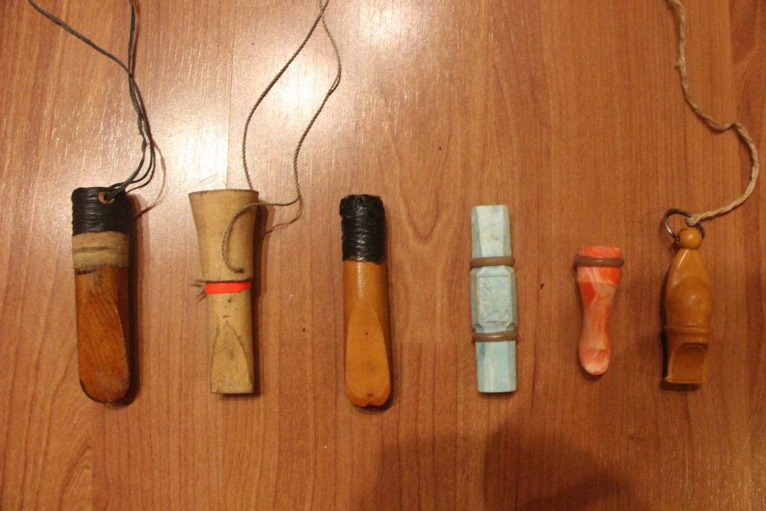 Манки все рабочие, 1 (правый) свисток для задержания браконьеров.