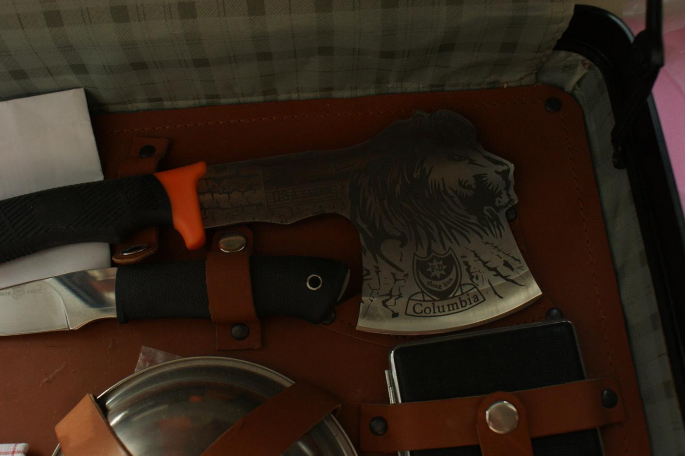 оба на четыре персоны,фляжки 0.6л вся посуда нержовейка не магнититься ,ножы и топоры китай но китай хорошый