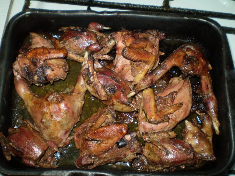 Как обещал готовое блюдо из "попутной дичи". Вот такие получились дрозды с куропатками. С черносливом и медом.